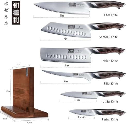 This Japanese kitchen knife set combines modern magnetic storage with traditional blade craftsmanship. Forged from high-carbon stainless steel and paired with a double-sided acacia wood magnetic block, this 7-piece set delivers elite sharpness, control, and versatility for serious home chefs and outdoor-minded cooks alike.