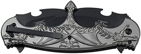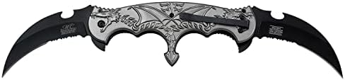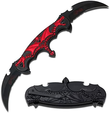 The fantasy folding knife from the Masters Collection is a visually striking, collectible knife designed for enthusiasts and outdoor hobbyists alike. Featuring a 3.5-inch dual black stainless steel blade with red flame design and a dual red dragon aluminum handle, this compact 6-inch folding knife combines style, portability, and premium craftsmanship.