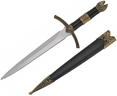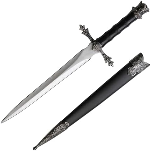 The medieval mini short sword is a collectible masterpiece inspired by King Arthur and classic medieval weaponry. Featuring a stainless steel blade and ornate cast metal handle, this 13.5-inch sword is perfect for display, cosplay, or adding a premium piece to your historical collection.