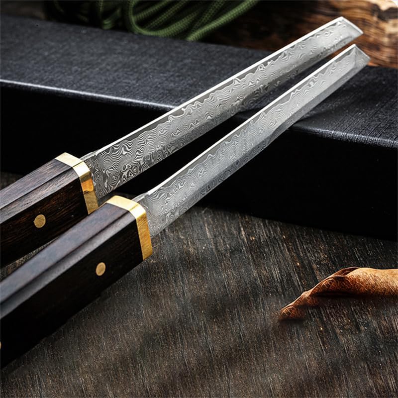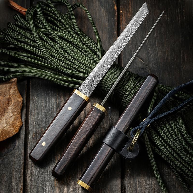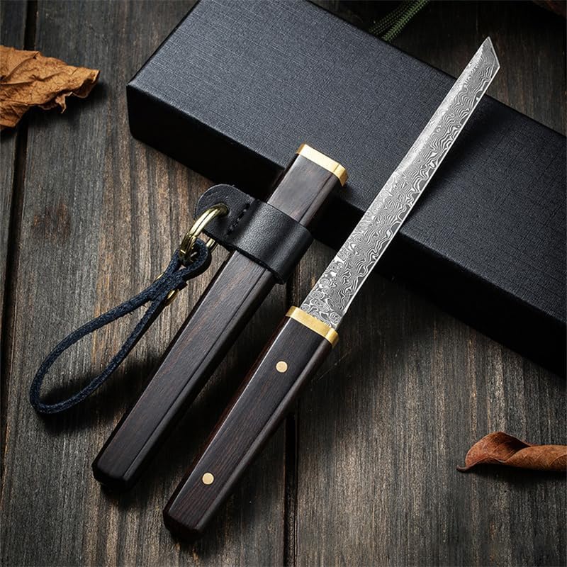 The Mini Katana Knife is a beautifully crafted mini Katana knife designed for collectors, hobbyists, and outdoor enthusiasts. Featuring a 4.8” Damascus steel tanto blade with superior hardness and corrosion resistance, this fixed blade knife is ideal for display, letter opening, or light cutting tasks. Its compact size and exquisite craftsmanship make it a standout piece.