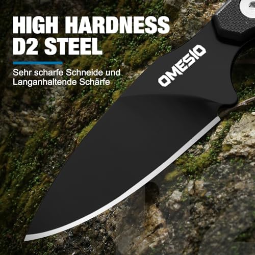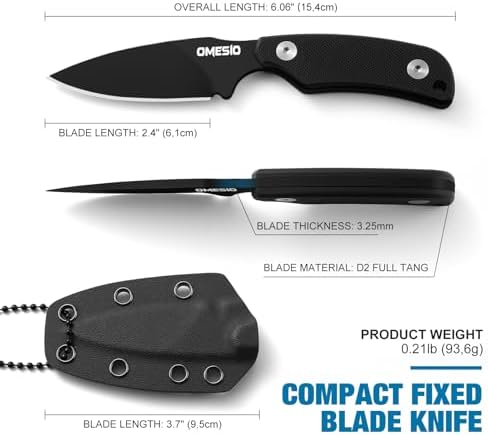 The Omesio D2 Neck Knife is a compact fixed-blade tool engineered for fast access, secure carry, and dependable performance. Designed for everyday carry and outdoor use, it combines a razor-sharp D2 steel blade with a full-tang build and a lightweight neck-carry system.