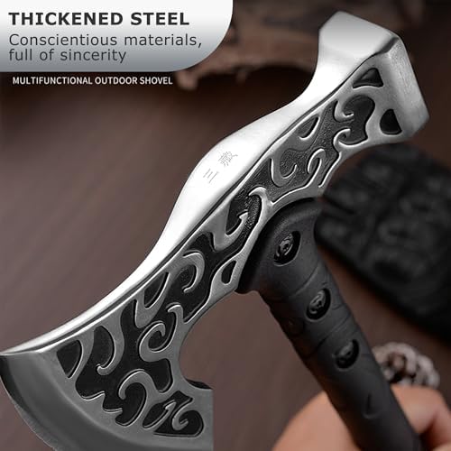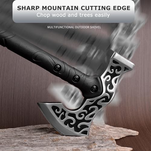Dual-Function Design: Features a sharp axe edge for cutting and a hammerhead for striking, making it ideal for chopping, digging, pounding, and even throwing.