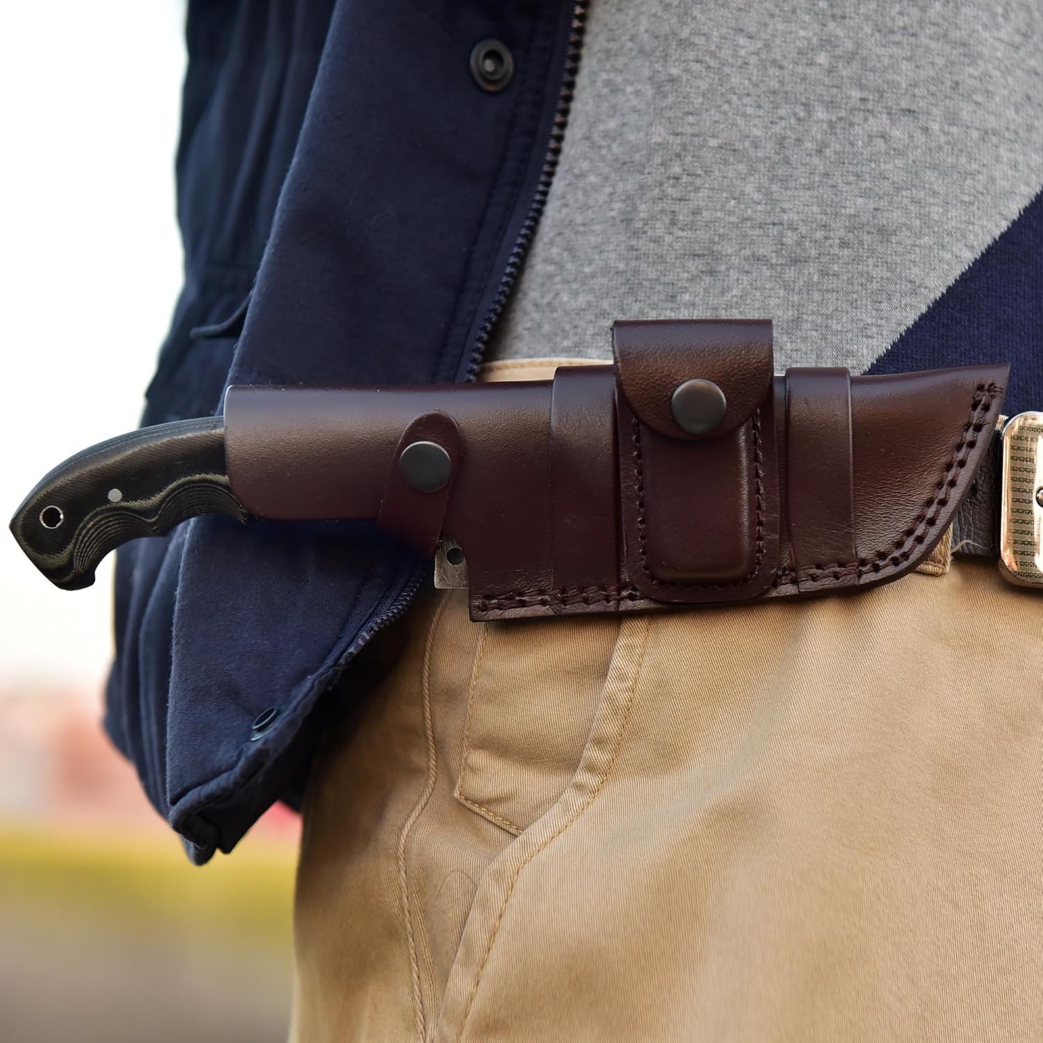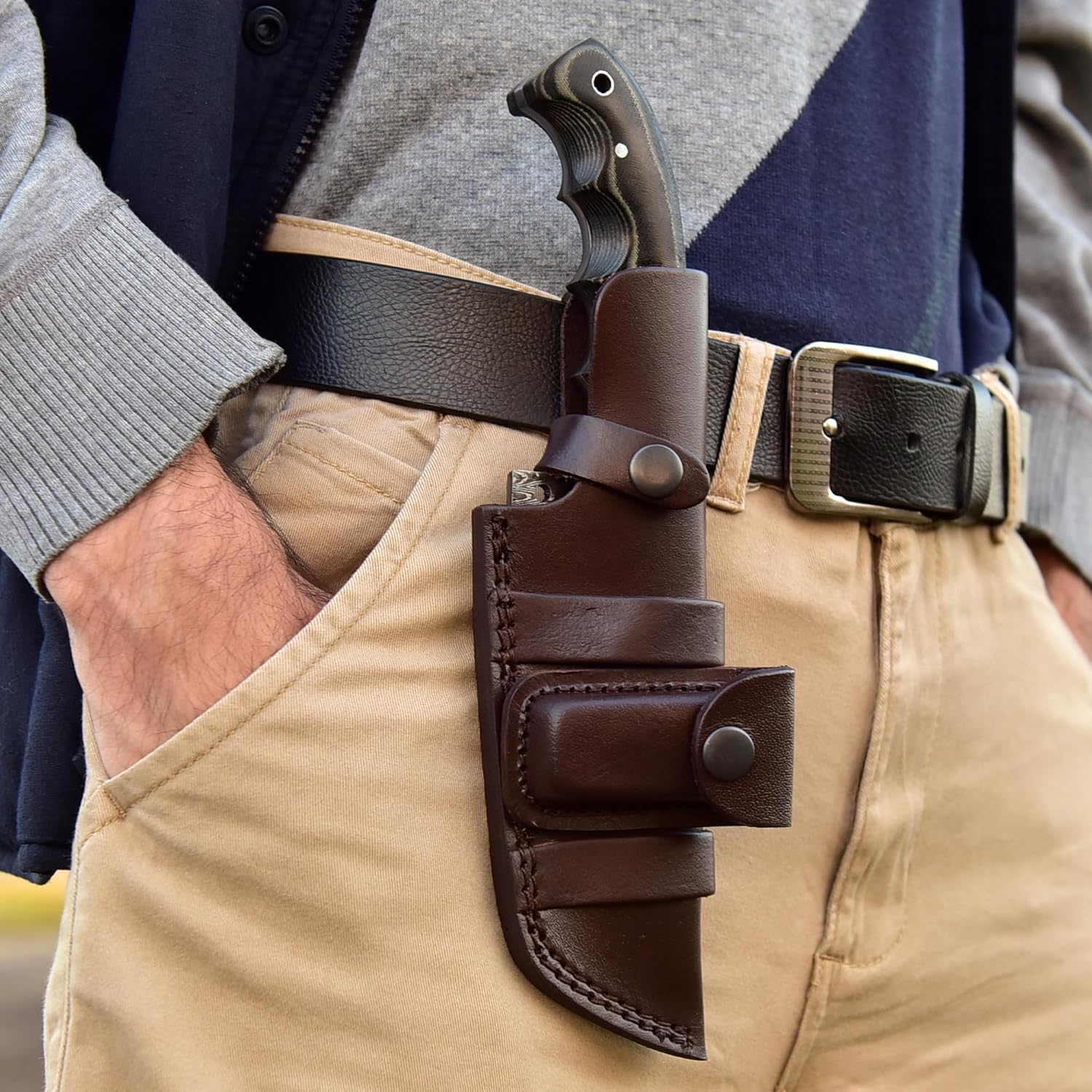 ✔️ Hand-Stitched Vertical Leather Scabbard – Durable and stylish protection.