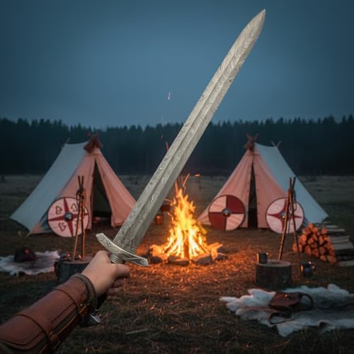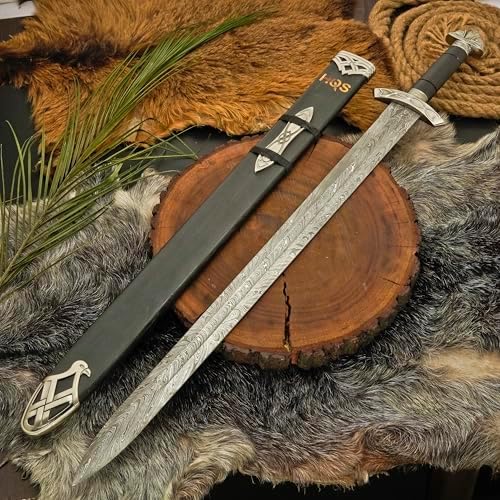 This Handmade Viking Sword is a meticulously crafted replica inspired by legendary Norse warriors. Featuring a hand-forged Damascus steel blade and an ash wood handle, it delivers authentic Lothbrok-style aesthetics and functionality, perfect for collectors, reenactors, or decorative display.