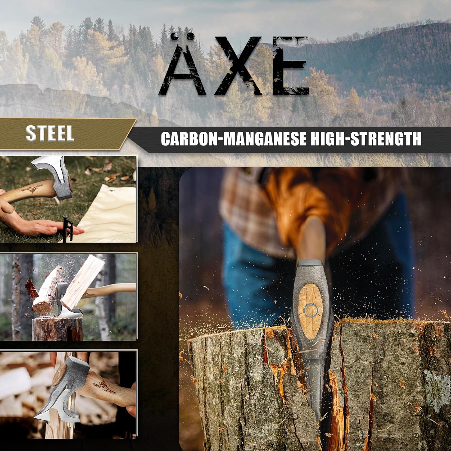 🪓 Hand-forged carbon-manganese steel head (56–60 HRC hardness)