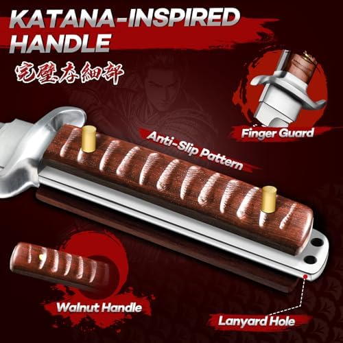 Ergonomic wooden handle inspired by traditional katana with anti-slip grooves