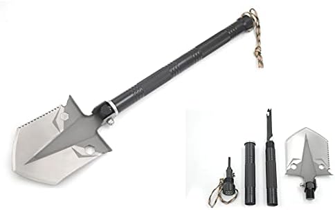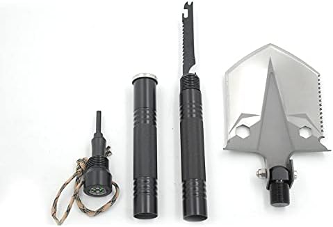 12-in-1 Multi-Tool: Includes a shovel, hoe, saws, bottle opener, cleaver, whistle, knife, fish scaler, emergency hammer, flat-blade, and more.