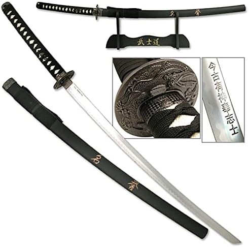• Matte black scabbard engraved with the Samurai Bushido code