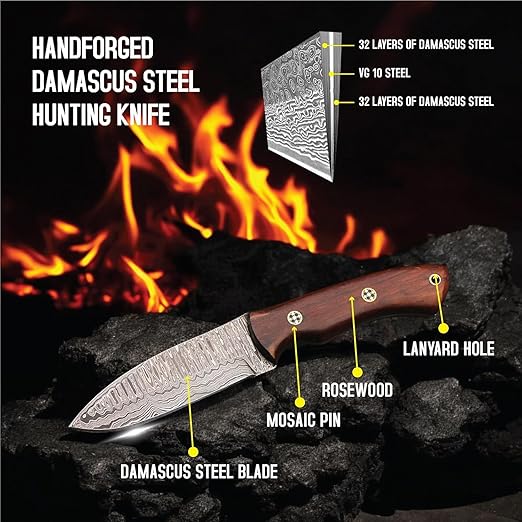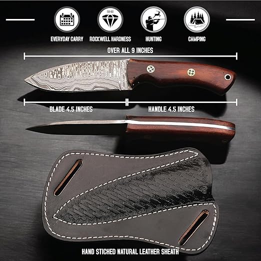 Exceptional Blade Quality: Hand-forged Damascus steel blade with superior sharpness, edge retention, and durability.