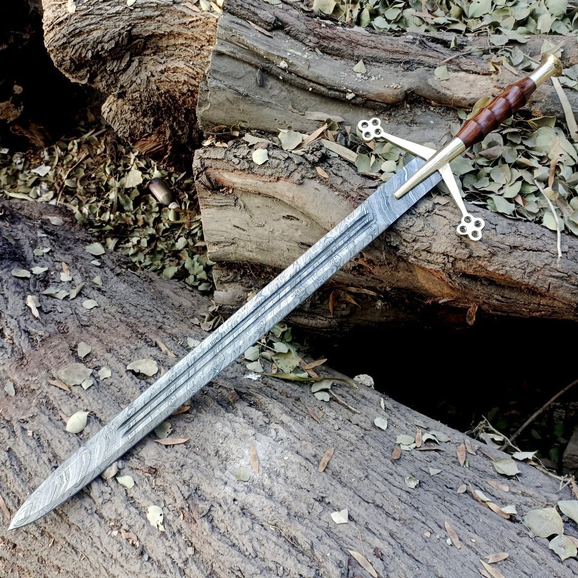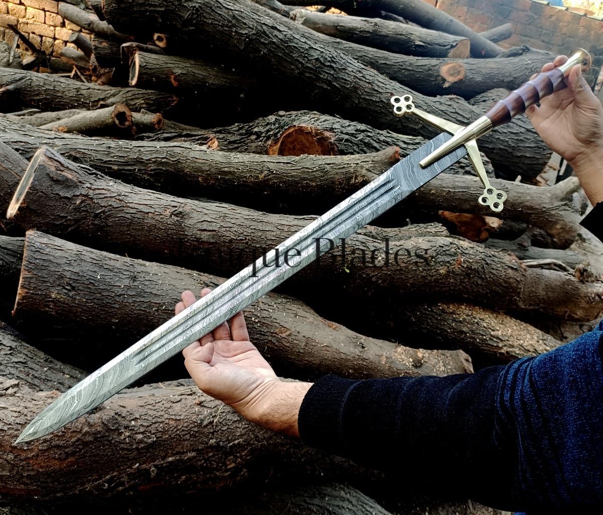 Two Handed Damascus Sword 38” Full Tang Double-Edge Claymore Markhor Knives