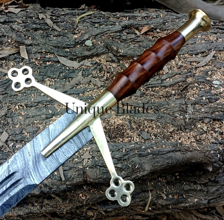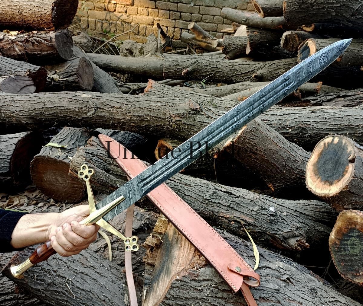 Bring the strength and elegance of the Scottish Highlands into your collection with this Two Handed Damascus Sword. Crafted for collectors, cosplayers, and historical enthusiasts, this 38-inch claymore features a full tang, double-edged blade, and premium Damascus steel construction—perfect for display, cosplay, or functional use.