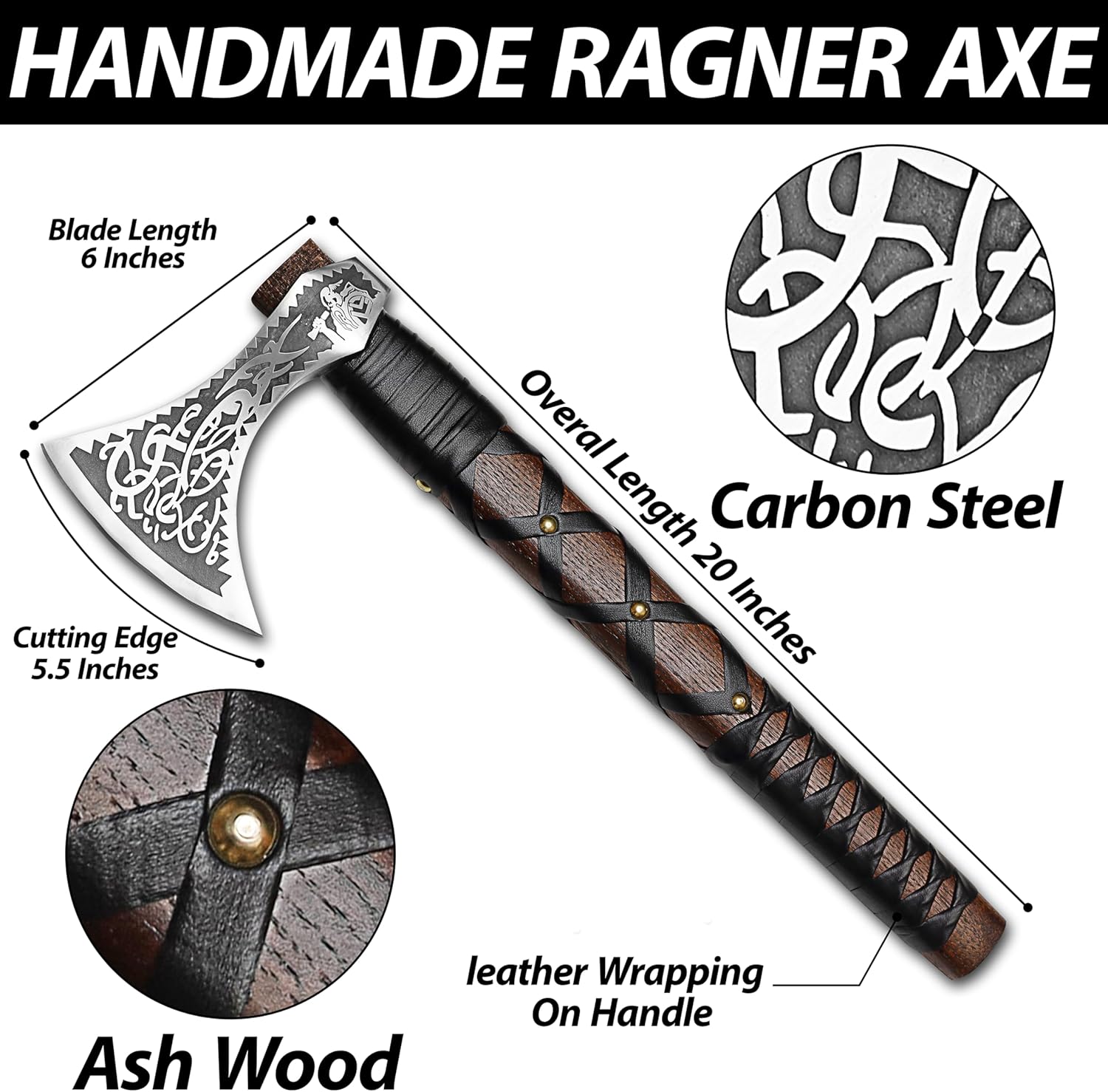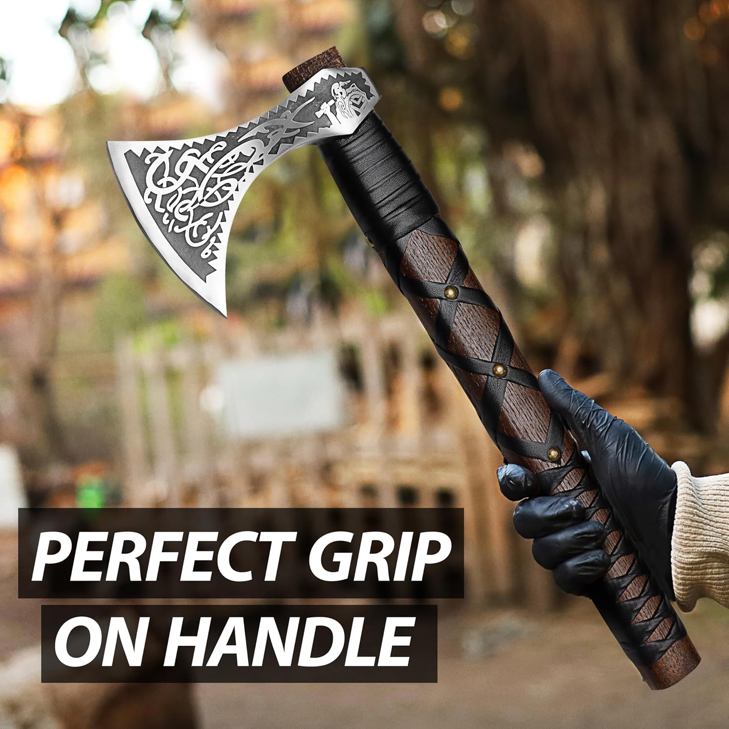 Each axe is individually hand-forged from high-carbon steel and engraved with intricate Norse-inspired etchings. This craftsmanship honors Viking heritage, combining authentic design with modern durability — a true collector’s item and functional tool.
