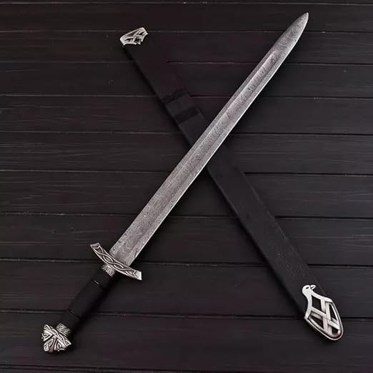 The Viking Sword Damascus Steel is a handcrafted, battle-ready Northman sword designed for serious collectors, reenactors, and enthusiasts of historical weaponry. Forged from premium Damascus steel and built with full-tang construction, this functional Viking sword delivers authentic balance, strength, and commanding presence, complete with an original leather scabbard.