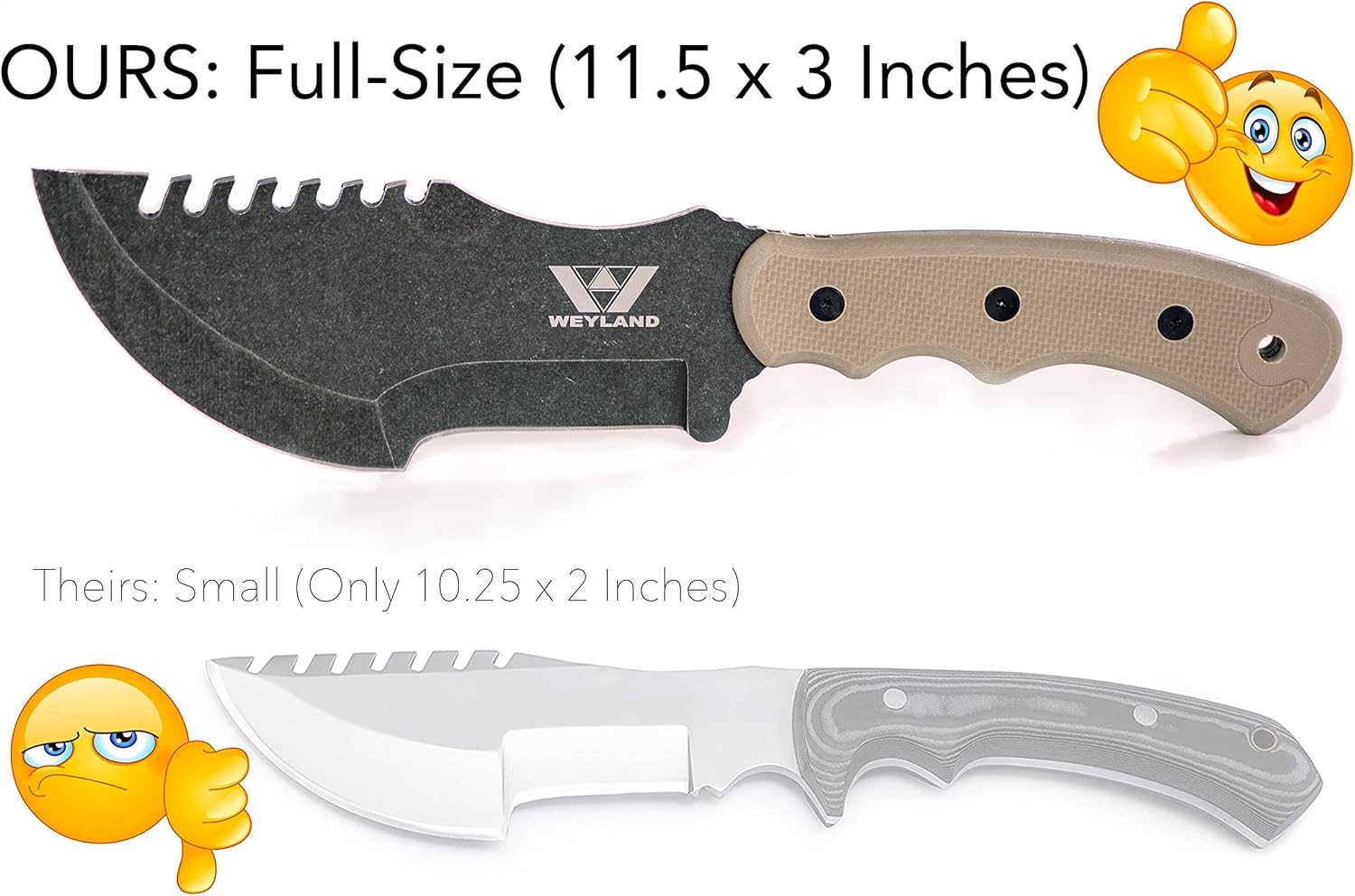 WEYLAND Handmade Tracker Knife – Large Outdoor Tactical Blade Designed for serious adventurers, the Handmade Tracker Knife from WEYLAND combines rugged durability with tactical precision. Featuring a 65Mn carbon steel full tang blade, G10 fiberglass handle, and scout-style horizontal carry leather sheath, this fixed blade knife excels in survival, bushcraft, camping, and hunting scenarios.
